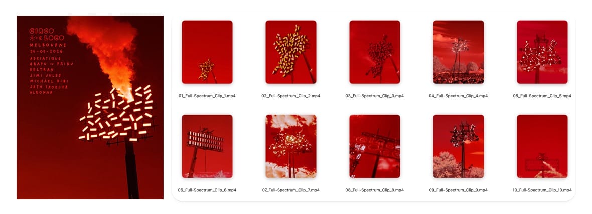 When Circoloco came to Melbourne, we built them a full spectrum asset suite using a modified camera that captures light the human eye can't see. Those assets went on to announce Circoloco shows around the world.